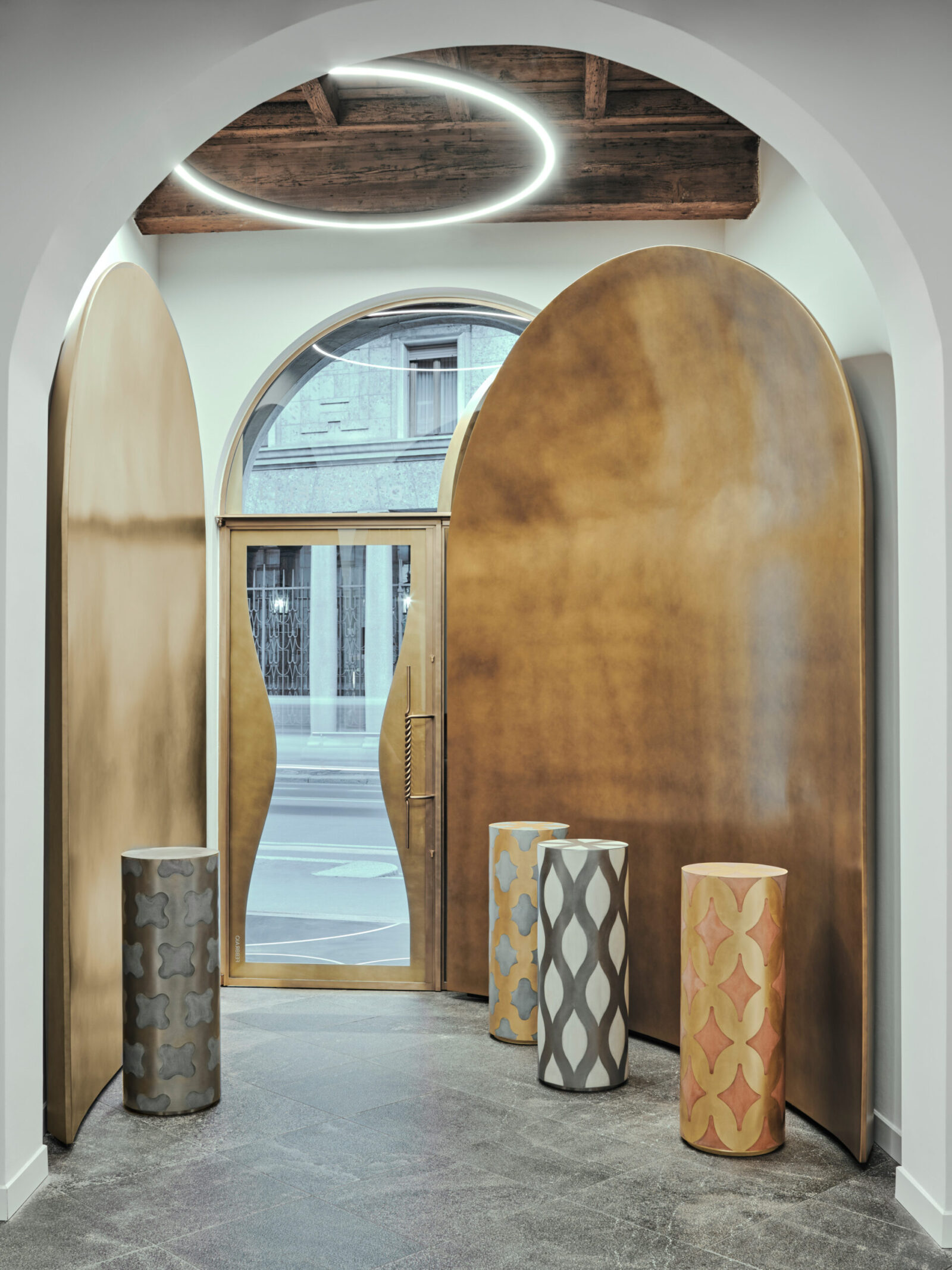 De Castelli is one the leading metal companies that fuses craftsmanship and artisanal techniques with hi-tech industrial processes, leading to innovative and beautiful furniture products and architectural surfaces. At their new showroom in downtown Milan, visitors are welcomed by an immersive experience and unexpected interactions with this timeless and yet always surprising material.